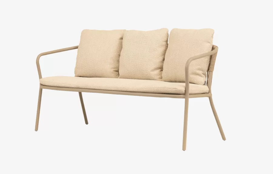 O Banco Adhara amplia a experiência de contemplação proposta pela linha ao unir leveza, conforto e convivência. Seu desenho fluido cria um gesto acolhedor, enquanto a trama em corda náutica filtra a luz e o ar, tornando cada momento mais sensorial.