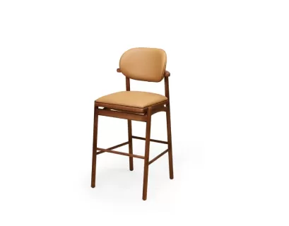 Tendo a base em alumínio para pintura eletrostática ou laqueada e detalhe da base em alumínio para pintura eletrostática ou laqueada a Banqueta Apruma é mais do que um sentar, é ter conforto, é endireitar, é melhorar, é acolher. Com revestimento externo encosto em couro ou tecido e revestimento interno encosto e assento em couro ou tecido tem o detalhe da alça em couro ou tecido. Apruma é elegância, é ter postura, ao mesmo tempo em que é ter aquele toque de família, de amizade, é saber trazer para perto.
