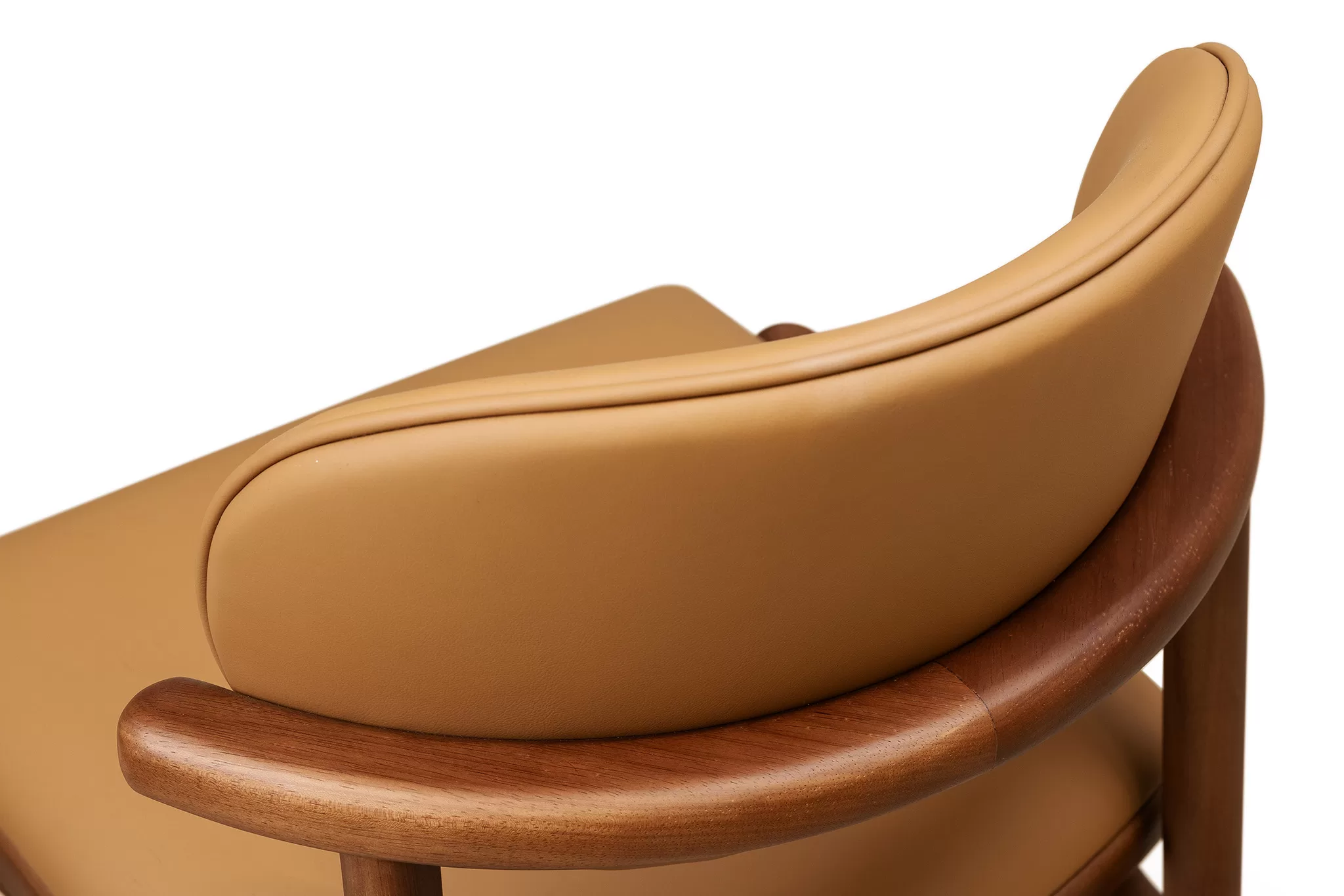 Ela possui braços integrados e um apoio para os pés, o que favorece uma postura ergonômica, tornando-a ideal para balcões e bancadas. Seu estilo moderno com toques retrô e linhas arredondadas a torna uma peça versátil, perfeita para ambientes residenciais ou comerciais, como cozinhas gourmet, bares ou restaurantes.