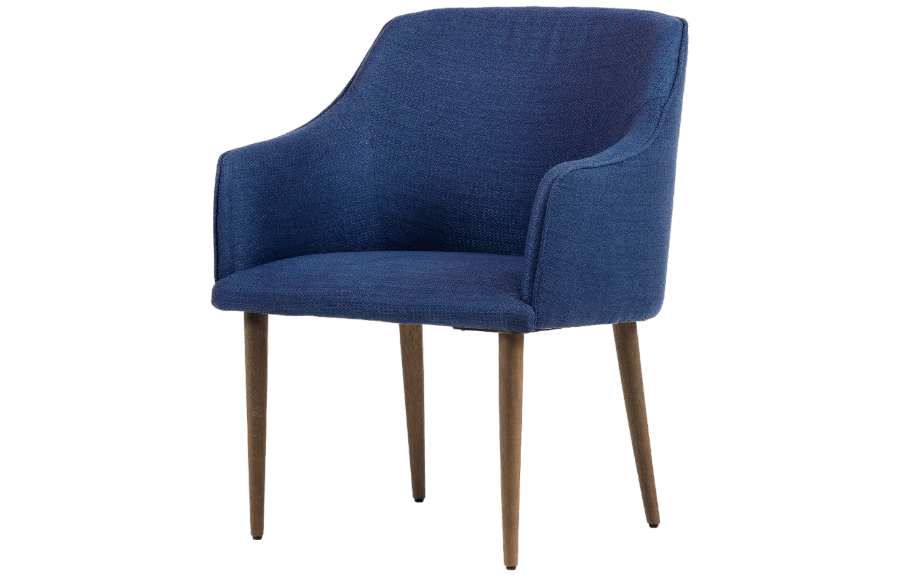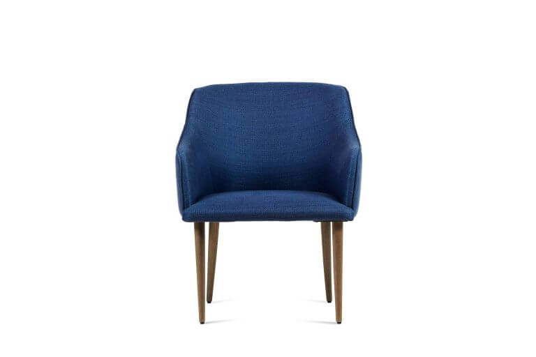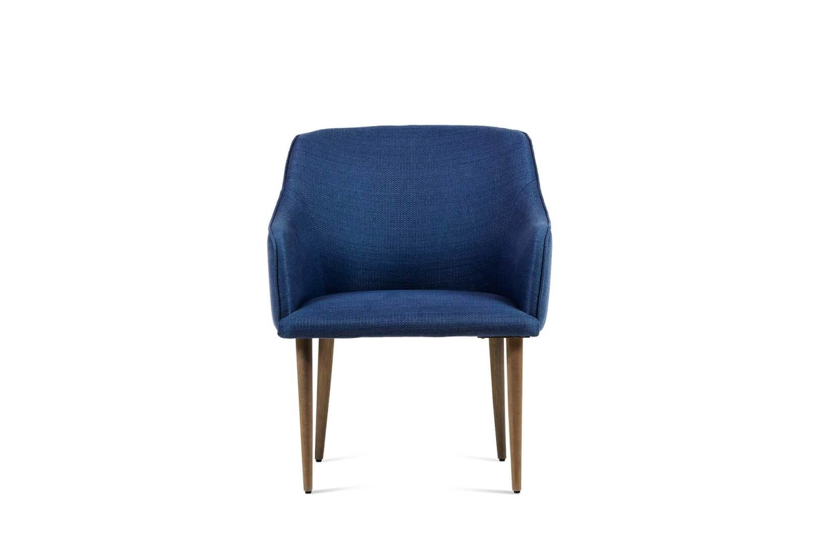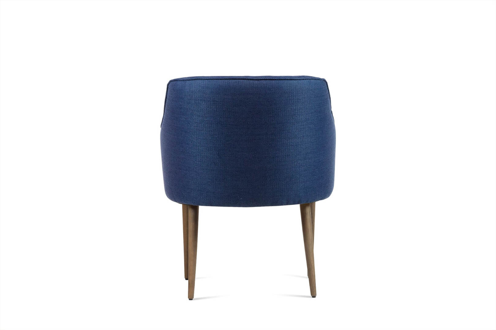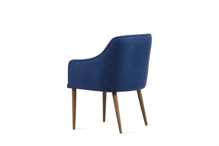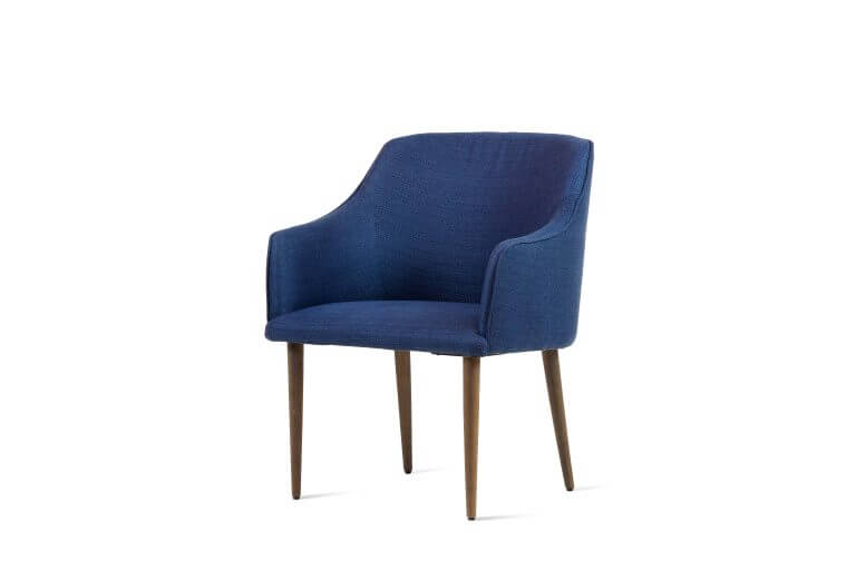 Estrutura em compensado moldado, revestido em espuma flexível de poliuretano poliéster de alto desempenho e manta siliconada. Pés torneados em madeira maciça.