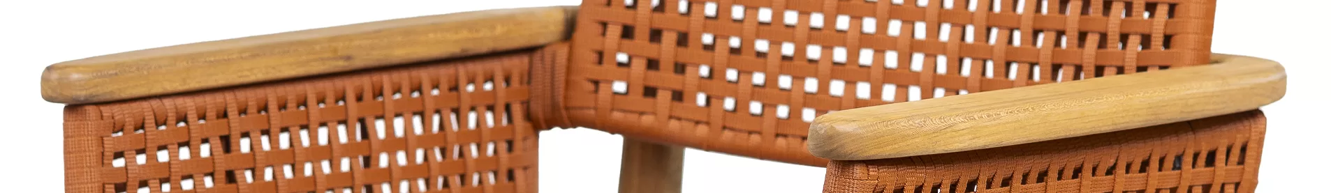 Em sua estreia pela Franccino, Daniela Ferro assina dez peças para a coleção Origem. O desenho a serviço da arte sustenta seu trabalho, que busca exaltar, entre outros elementos, o artesanato brasileiro. Para as versões poltrona e cadeira, a harmonização dos elementos passa pela estrutura em madeira e os acabamentos em couro ou tecido no assento, combinados com a tela sextavada no encosto, conferindo um ar clássico.