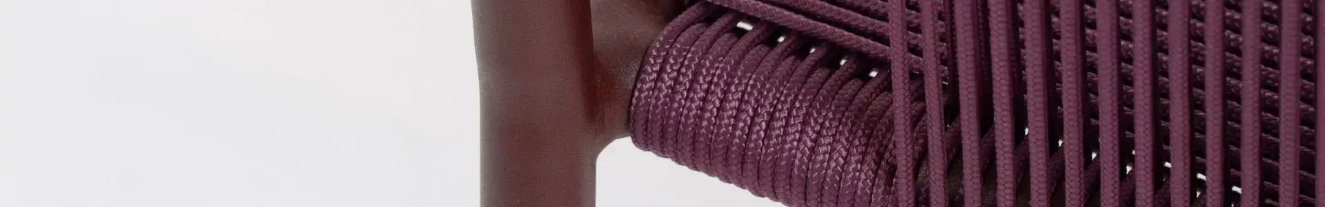 A Cadeira Dallas apresenta um design contemporâneo e minimalista, com estrutura metálica em acabamento fosco que garante durabilidade e resistência. Seu encosto e assento são confeccionados com cordas tensionadas em tom vinho, oferecendo conforto e um visual moderno. As alças nos braços seguem o mesmo estilo do encosto, proporcionando uniformidade ao design. Ideal para compor ambientes internos ou externos, a peça combina funcionalidade e sofisticação.