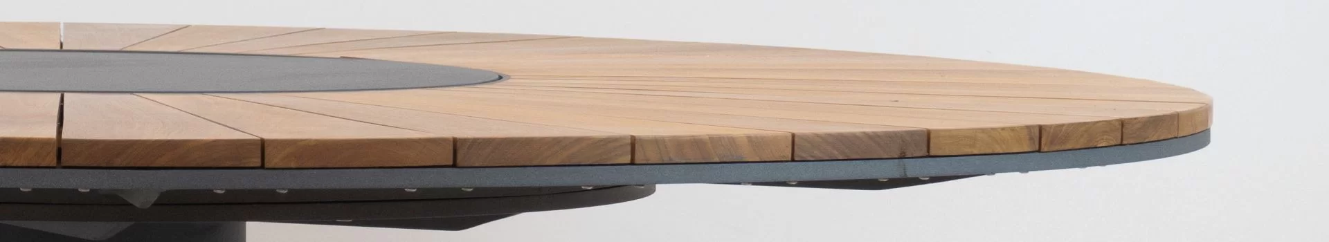 A Mesa de Jantar Lázio oferece um design diferenciado e moderno, com uma estrutura de alumínio que garante leveza e resistência. Sua base robusta em alumínio é complementada por um tampo igualmente em alumínio, criando uma estética minimalista e contemporânea. O toque inovador fica por conta da opção de base giratória embutida ao tampo, que agrega funcionalidade ao design, permitindo versatilidade e um fluxo dinâmico na interação com a mesa. O acabamento suave da superfície e o uso de alumínio trazem um ar sofisticado, tornando a mesa uma peça central que mistura estilo e praticidade com elegância discreta.