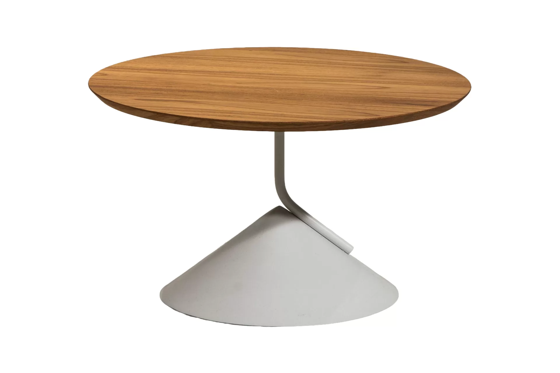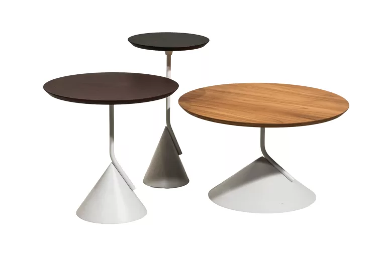 A Mesa Lateral Faro traduz o traço em sua forma mais sutil. A base cônica sustenta a haste metálica com precisão, elevando o tampo circular em equilíbrio e leveza. A composição é clara, sem excessos, revelando a estrutura como parte do desenho. Versátil e discreta, integra-se com naturalidade a diferentes ambientes, acrescentando presença delicada e proporção ao espaço.