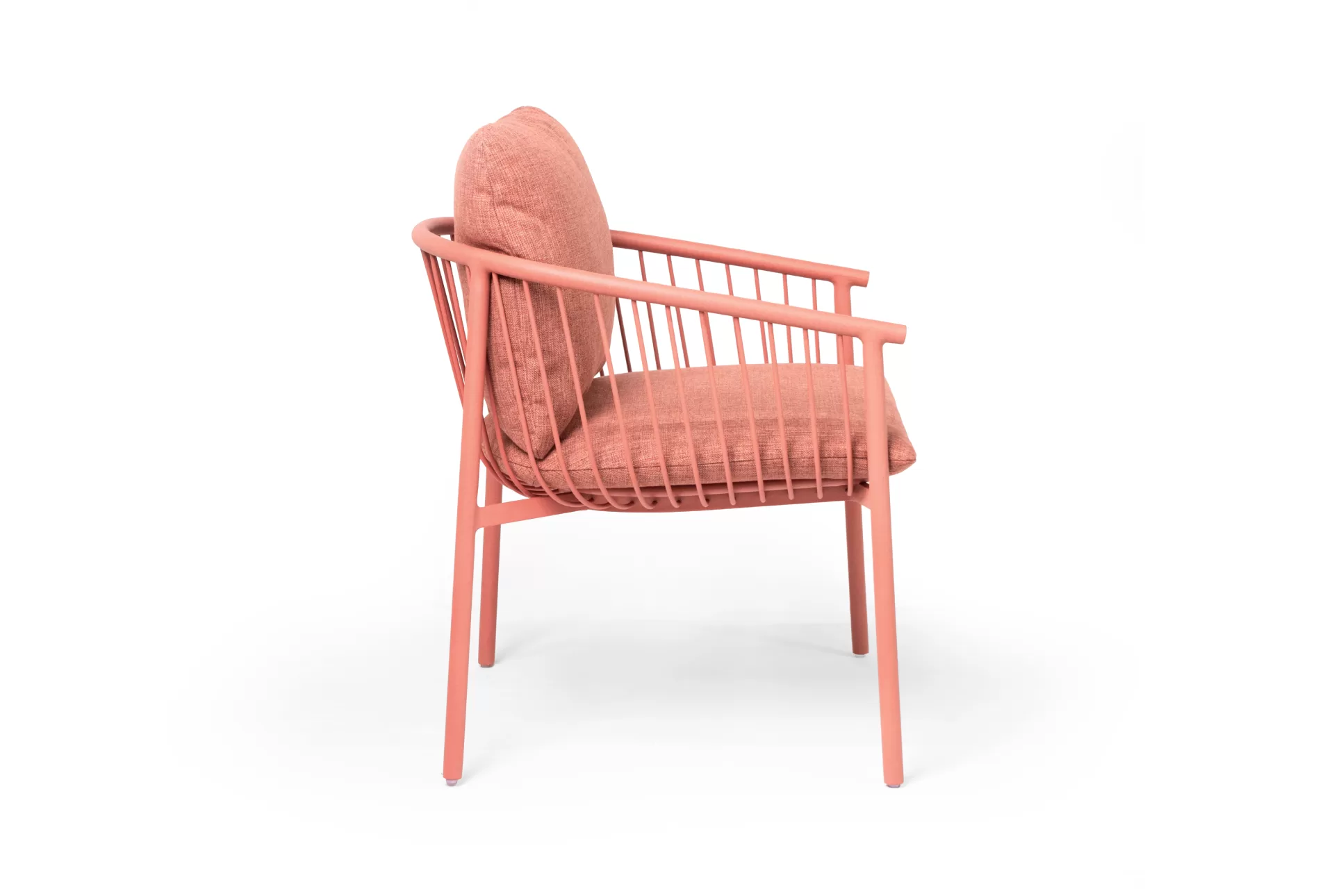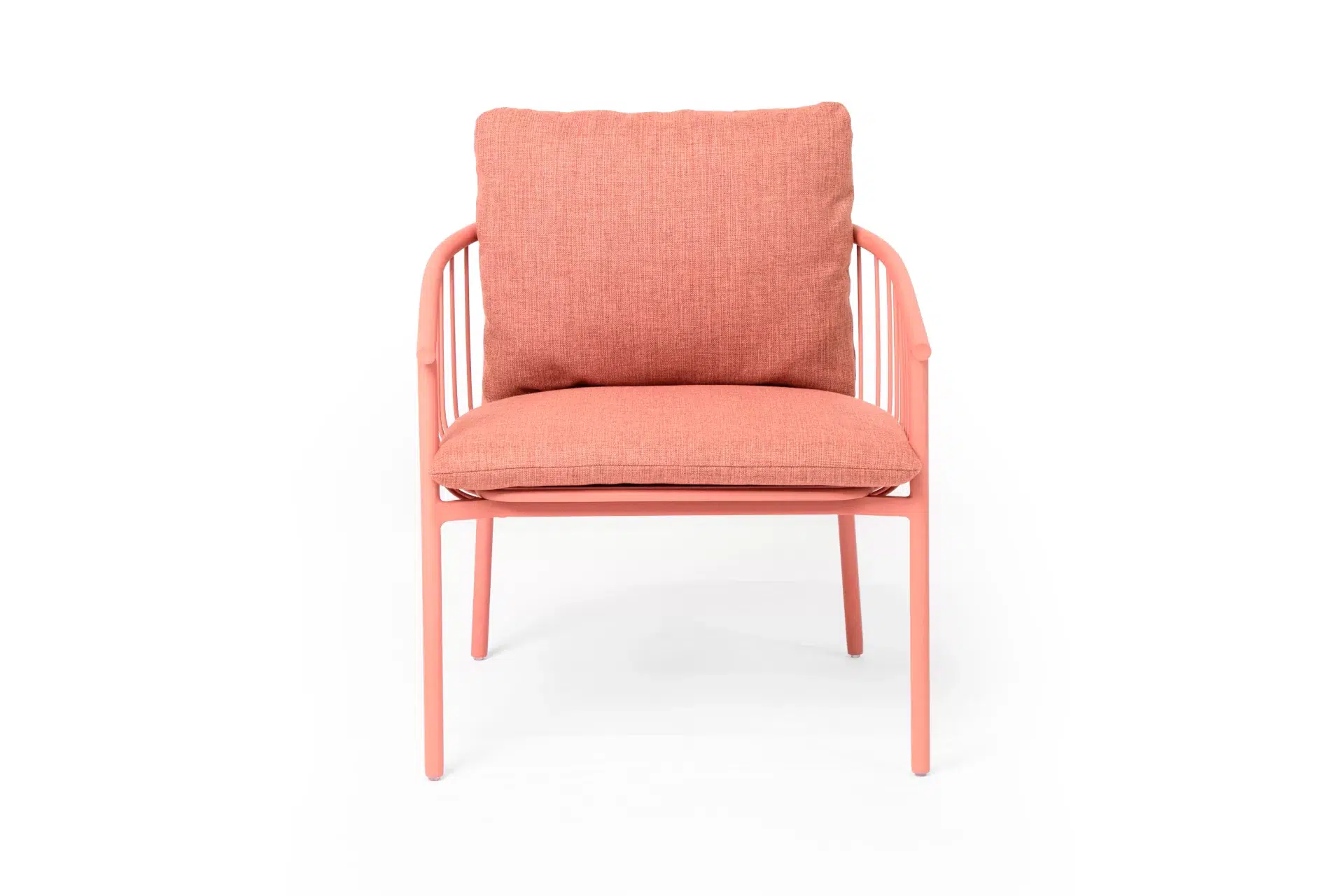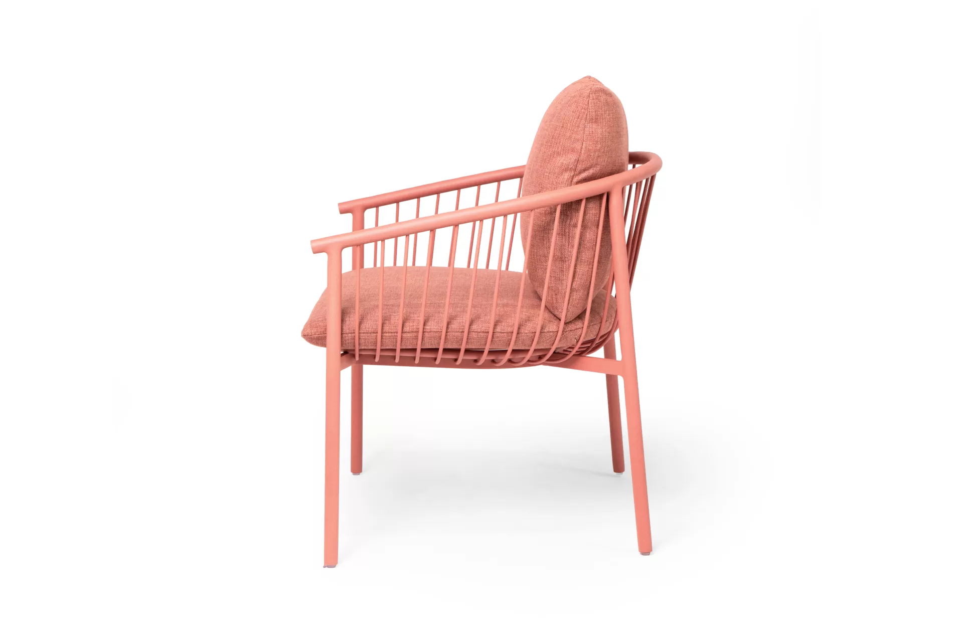 A Poltrona ARP amplia a linguagem da coleção em uma leitura mais generosa e acolhedora. Construída integralmente em alumínio, com estofado que convida ao descanso, a peça permite personalização da pintura eletrostática e do tecido, adaptando-se com precisão a diferentes projetos.