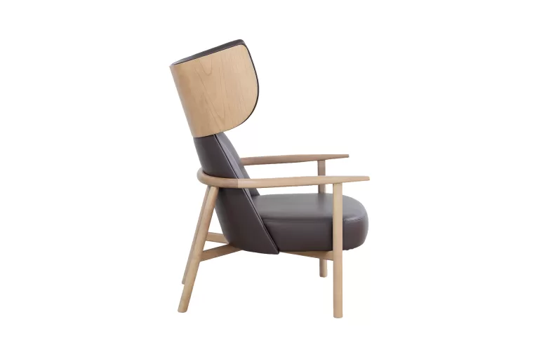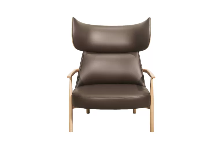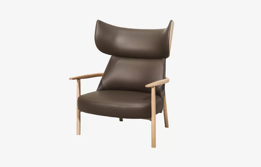 A Poltrona Costa evidencia o traço por meio da estrutura em madeira maciça que contorna e sustenta seu volume interno. O encosto alto cria uma sensação de acolhimento e privacidade, enquanto as proporções generosas reforçam sua presença arquitetônica.