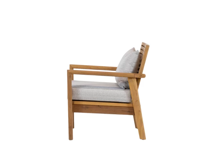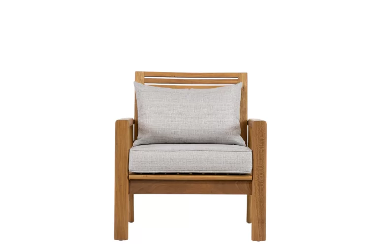 A Poltrona Turin tem sua estrutura sólida de madeira, exibe um charme rústico que reflete a qualidade e firmeza de sua construção. Seu design singelo e discreto transmite uma sensação de segurança e acolhimento, tornando-a a escolha perfeita para ambientes que buscam uma atmosfera tranquila e acolhedora. O assento e o encosto, ambos revestidos com almofadas em tecido acrílico, proporcionam não apenas conforto, mas também durabilidade, adequando-se facilmente ao uso diário. A opção de adicionar uma almofada extra para o encosto aumenta ainda mais o conforto, tornando a poltrona um verdadeiro convite ao descanso e ao aconchego.